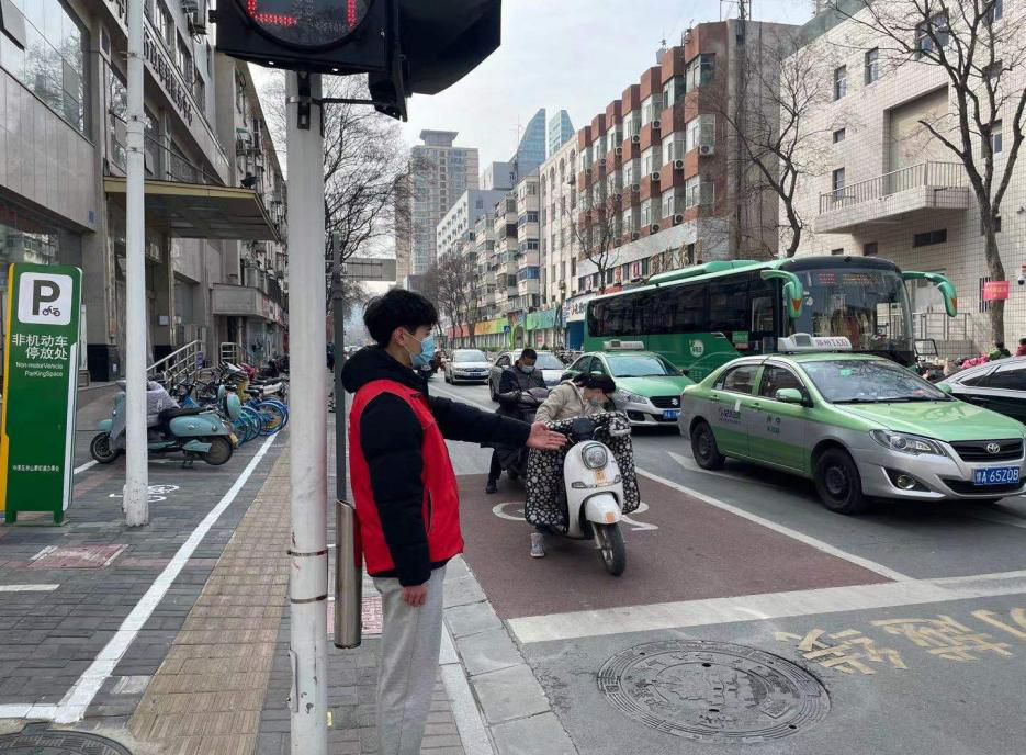 护理学院志愿者们穿着统一的红色志愿服务马甲,走上街头路口。劝导自行车、电动车、电动三轮车等非机动车辆不在机动车道上行驶;劝导行人不乱闯红灯、不乱穿马路、不随地吐痰;劝导机动车不乱闯红灯、不车窗抛物、不乱停乱放、不乱变车道、不乱鸣喇叭;地铁站内帮行人提行李、帮行人指路,提醒行人在地铁到站的时候距离门口一米远,先下后上。护理学院志愿者用行动诠释了文明的内涵,用自己的热情通过上岗维持交通秩序,创造安全、有序、文明、畅通的道路交通环境。