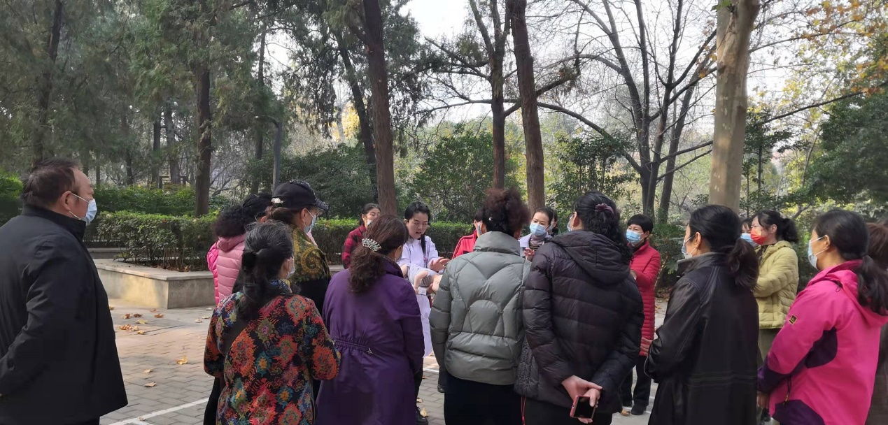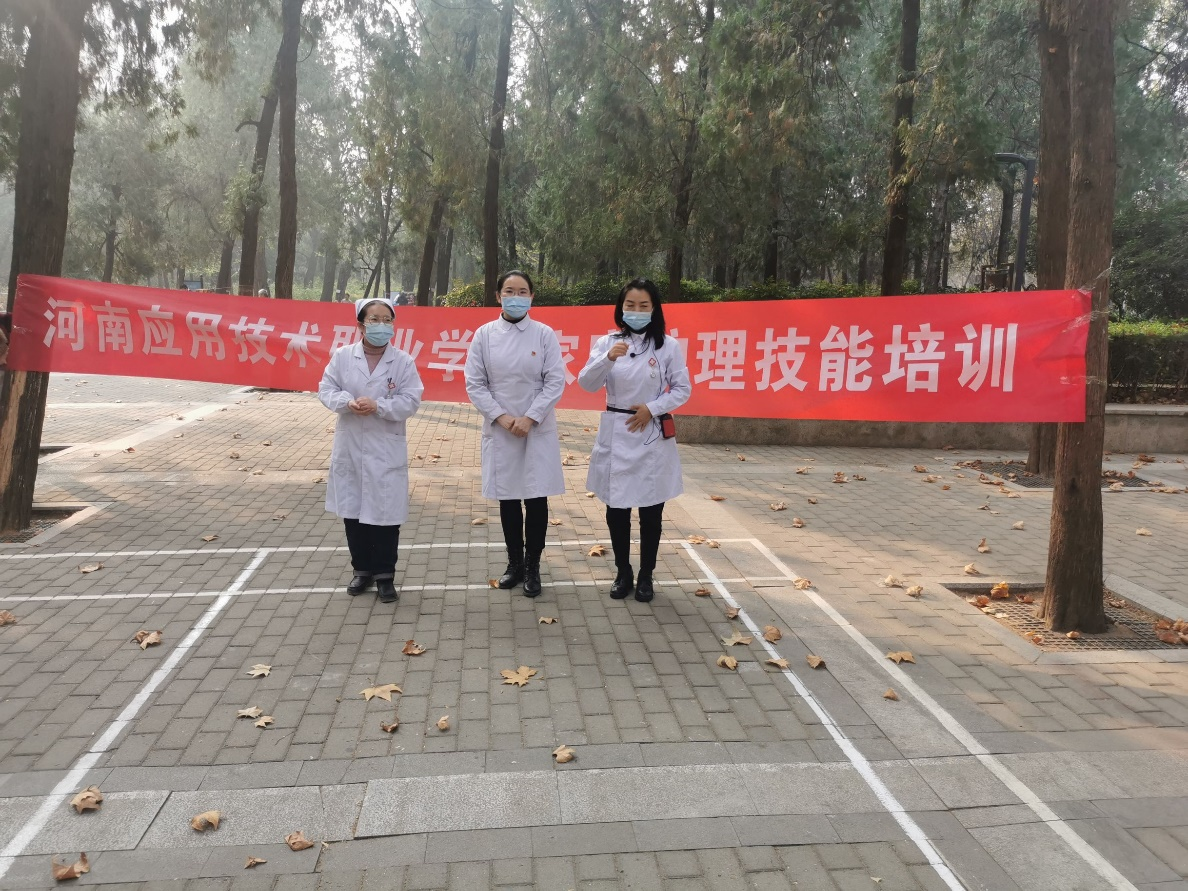为了更好的普及家庭健康教育,让更多的人群掌握家庭急救与护理,2021年11月19日上午,6776永利集团护理学院基护教研室杨丽萍主任、刘丽老师、石豫洁老师来到郑州市碧沙岗公园,五一公园及人民公园,向广大人民群众进行家庭急救与护理知识的普及。
