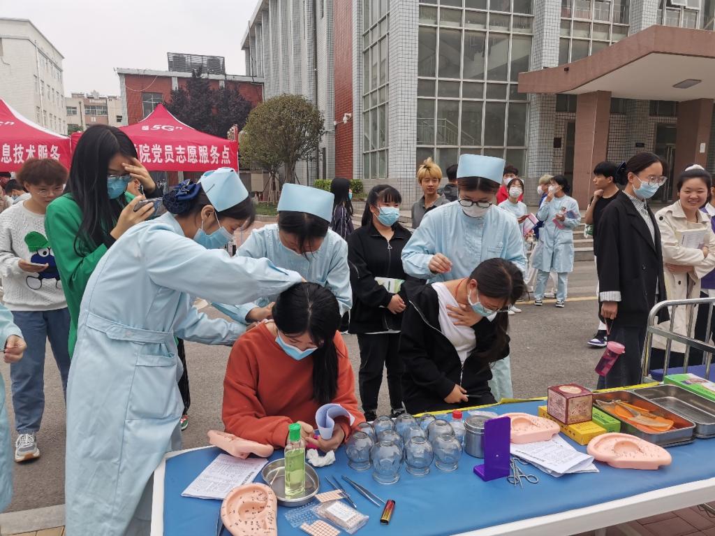 在此次职业教育活动周为全校师生及参会人员开展了健康体验活动,包括耳穴压豆、刮痧、拔火罐的操作及讲解等。现场展示的同学们经过中医窦纪梁、范冬雨老师的前期指导,操作娴熟,以平时日常生活中常见的亚健康问题为切入点,吸引了全校众多师生参与其中,获得了师生的一致好评。