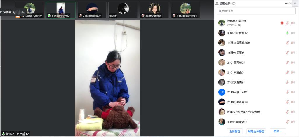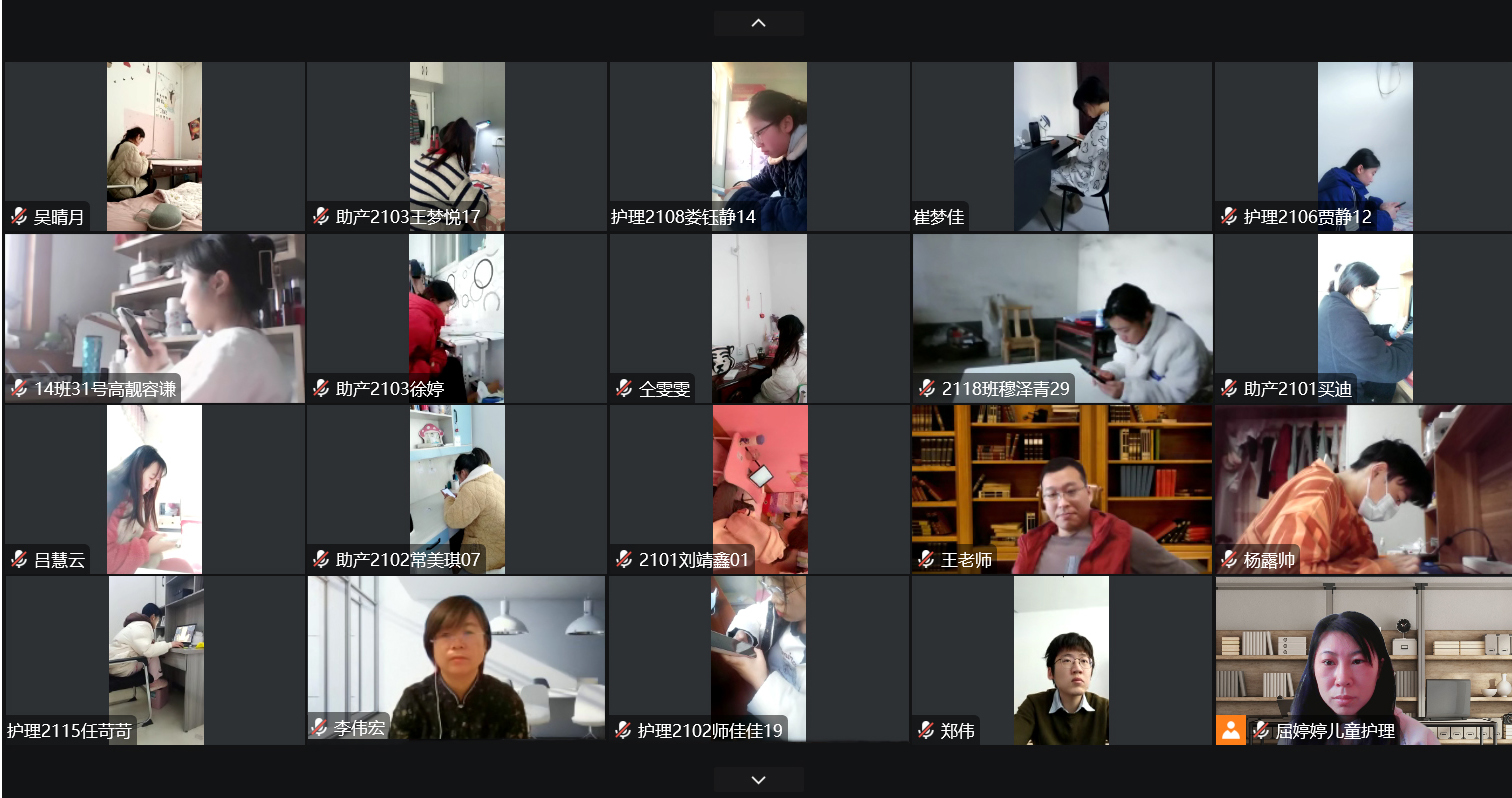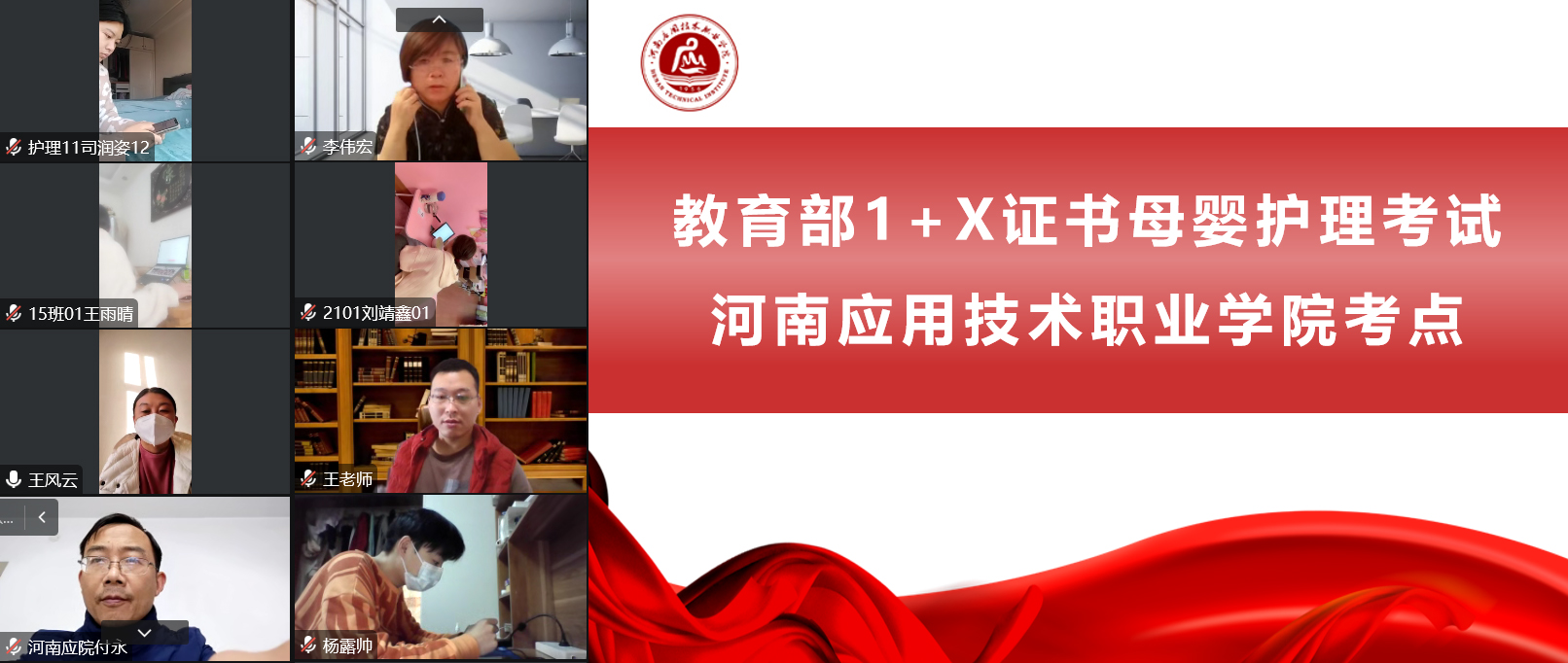 因疫情影响,我院与考评机构多次协商决定采取线上考试的方式举办此次“1+X”母婴护理职业技能等级认证(中级),要求考生摆放双机位机器,第一机位登陆微信进行微信小程序注册,第二机位登陆腾讯会议,第二机位可见考生的侧面、双手及可听到声音,配合监考老师要求调整摄像头方位、对周围环境进行检查。