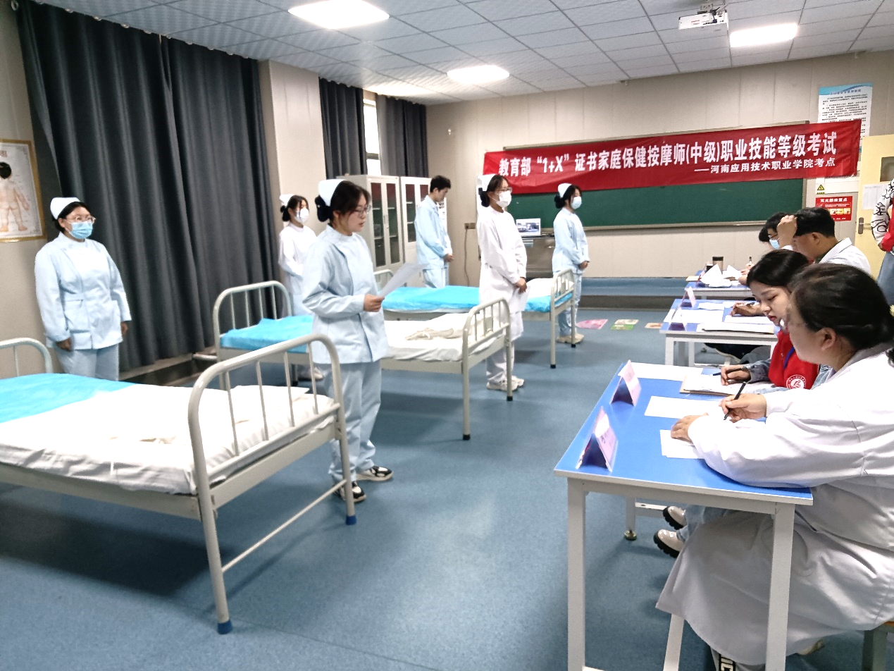 为贯彻执行《国家职业教育改革实施方案》,落实高职院校“学历证书+若干职业技能等级证书”试点建设工作,2023年5月7日,6776永利集团护理学院开展教育部“1+X”家庭保健按摩职业技能(中级)证书考试,共有100名学生参加了此次考试,其中所有考生的考试成绩均通过,通过率达到100%。