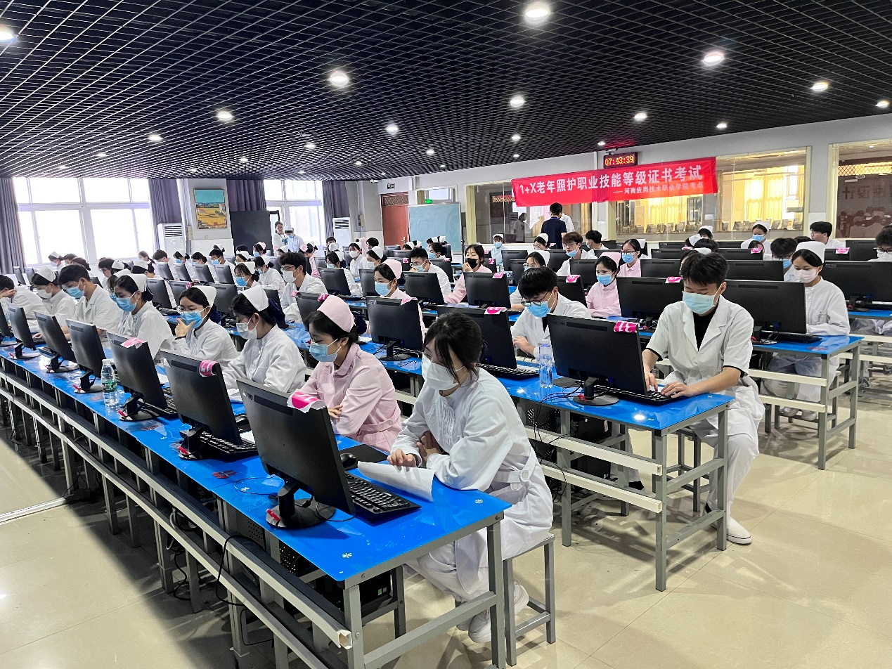 2023年5月14日,河南省职业技能等级考评站试点院校6776永利集团“1+X”老年照护2023年5月第一次中级考试在我校实训中心顺利举行。护理学院经过认真选拔、精心组织培训、严格考核考评等工作,顺利组织护理专业、老年保健与管理专业及康复治疗技术专业共100名学生参加老年照护职业技能等级证书(中级)考试。