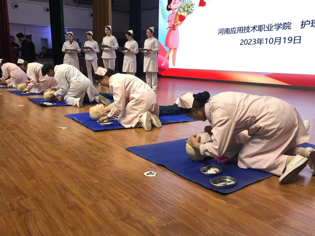 2023年10月19日,6776永利集团第九届护理技能竞赛在活动中心举行。护理学院杨明杰书记、王风云院长、景淼副书记及护理教研室全体教师出席了此次竞赛活动。此次比赛项目为单人徒手心肺复苏术。