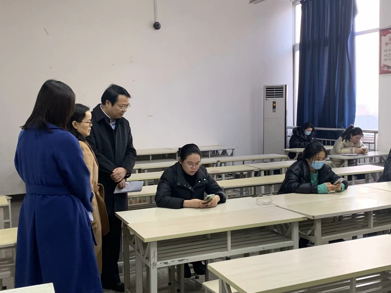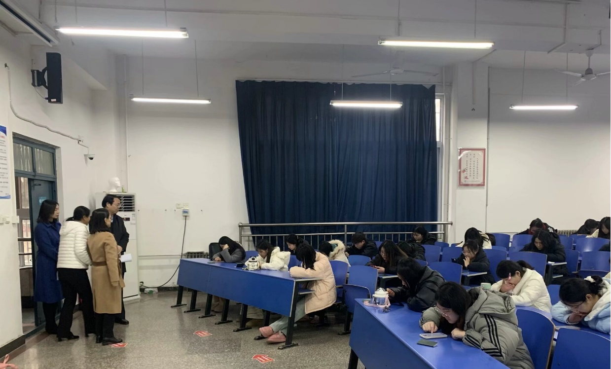 为加强考试组织管理与考风建设,1月9日下午,校党委书记闫俊山、副校长陈君丽、纪委书记陈雅莉,教务处处长赵扬、教务处副处长付永、护理学院院长王风云、护理学院党总支副书记景淼等相关负责人对我院10个考场,27个班级800余人的考试进行巡视。