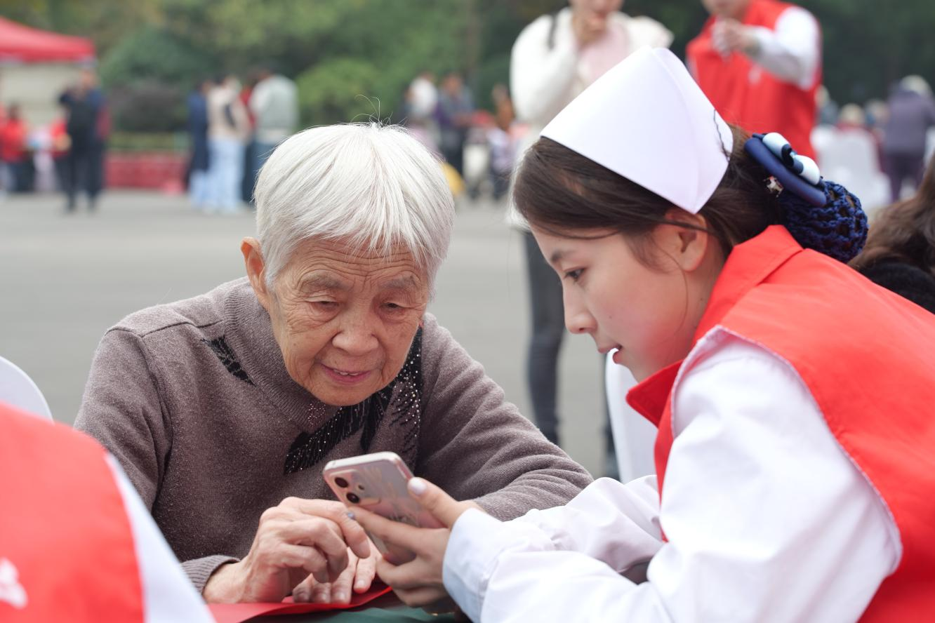 “桂香漫城添暖意,指尖传技润银铃”。10 月 28 日至 29 日重阳节来临之际,由河南省民政厅、河南省老龄办与河南广播电视台联合主办的第三届大象敬老节,分别在郑州市五一公园、河南省老年公寓温情启幕。yl6776永利集团师生志愿者组成的 “智慧助老服务队” 全程参与,以 “智慧银龄,数字助老” 为主题,手把手教老年朋友玩转智能手机,让科技红利跨越 “数字鸿沟”,为敬老节注入青春暖流。