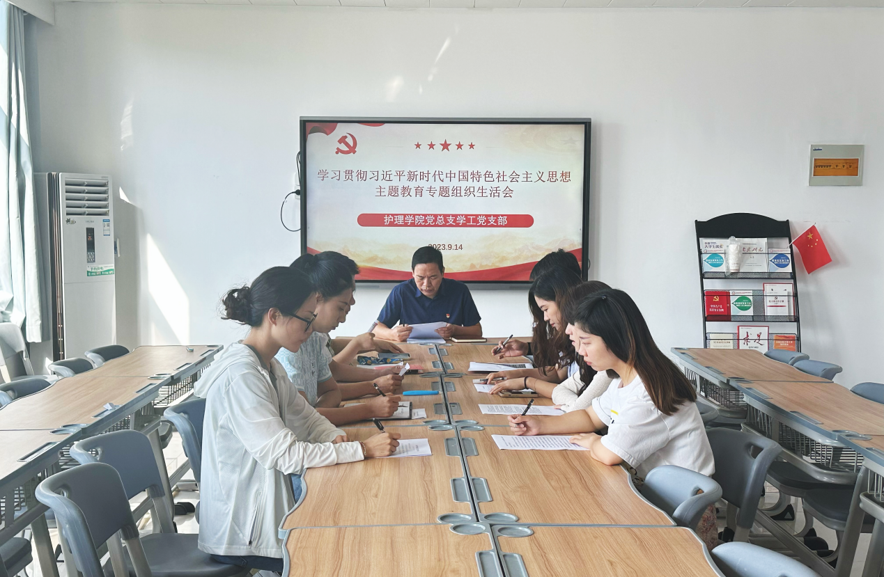 根据《中共6776永利集团委员会关于召开学习贯彻习近平新时代中国特色社会主义思想主题教育专题组织生活会》的通知要求,2023年9月14日上午,护理学院党总支学工党支部组织全体党员在A515召开主题教育专题组织生活会,会议由党支部书记杨明杰主持。