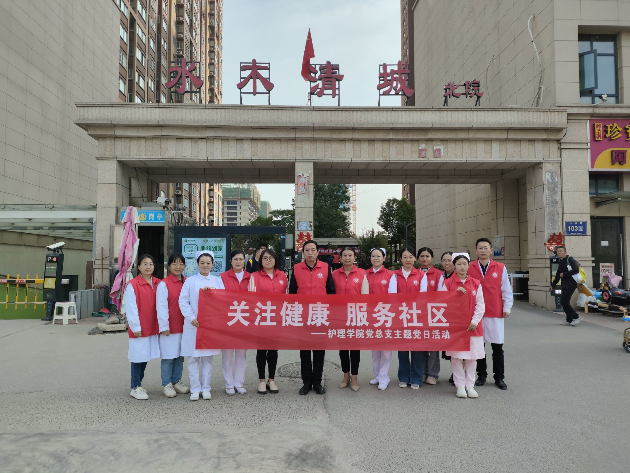 为深入开展学习贯彻习近平新时代中国特色社会主义思想主题教育,进一步增强社区居民健康意识,提升家庭护理急救技能,2023年10月27日上午,护理学院党总支组织教师党员前往郑州市中原区西流湖街道水木清城社区开展“关注健康,服务社区”主题党日活动。