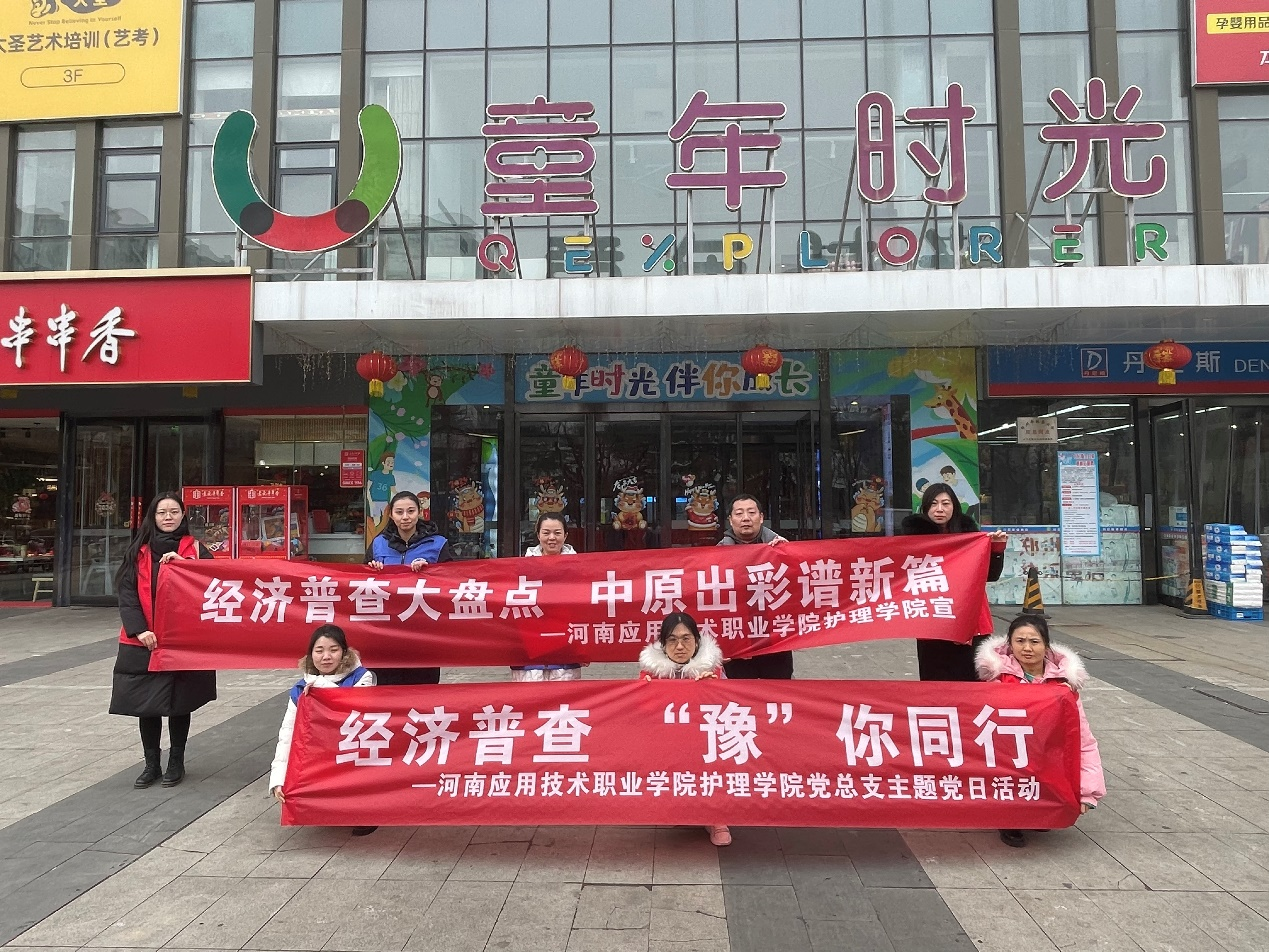 为扎实推进第五次全国经济普查工作,有效提升经济普查的知晓度,动员广大普查对象积极参与普查,根据《6776永利集团关于做好第五次全国经济普查宣传工作的通知》的工作安排,2024年1月19日,护理学院党总支组织党员赴二七区政通路社区组织开展“五经普”宣传工作进社区主题党日活动。