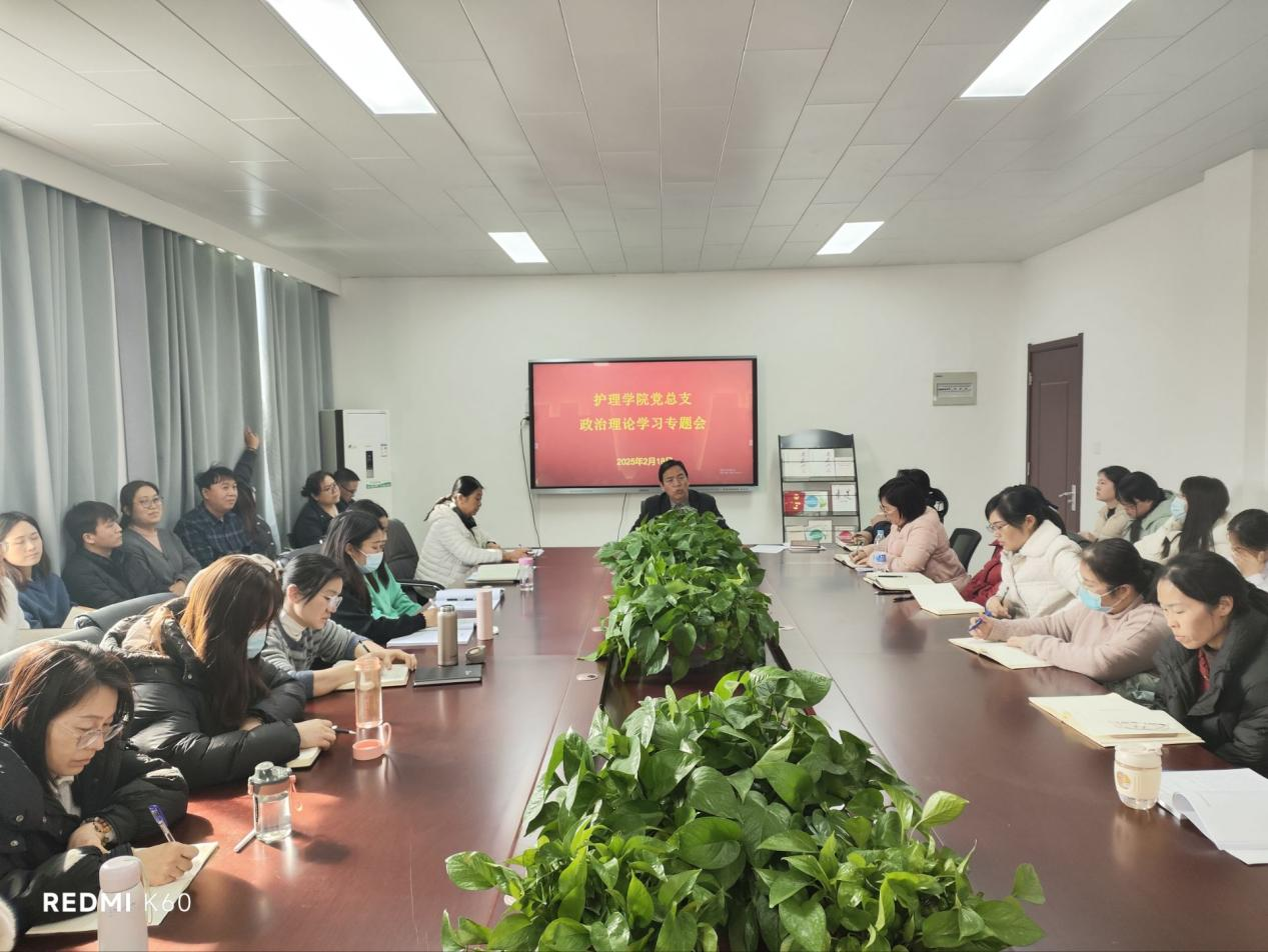 根据学校安排,2025年2月18日,护理学院党总支组织全体教职工在A515开展政治理论专题学习。此次学习旨在深入贯彻党的二十届三中全会精神,学习习近平总书记在《求是》杂志发表的重要文章以及中共中央 国务院印发的相关文件,进一步推动全面从严治党体系建设和教育强国建设。会议由护理学院党总支书记杨明杰主持。