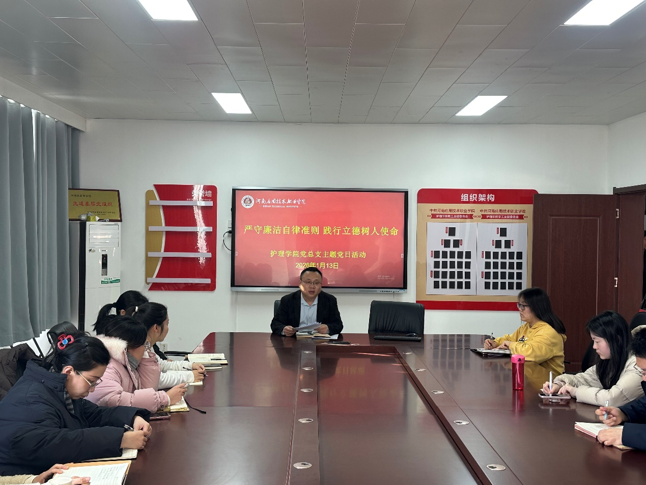 为筑牢党员干部廉洁思想根基,切实推动党风廉政建设走深走实,1 月 13 日,护理学院党总支以 “严守廉洁自律准则 践行立德树人使命”为主题,开展党风廉政教育主题党日活动。活动由党总支书记张忠勇主持,全体党员同志参加。