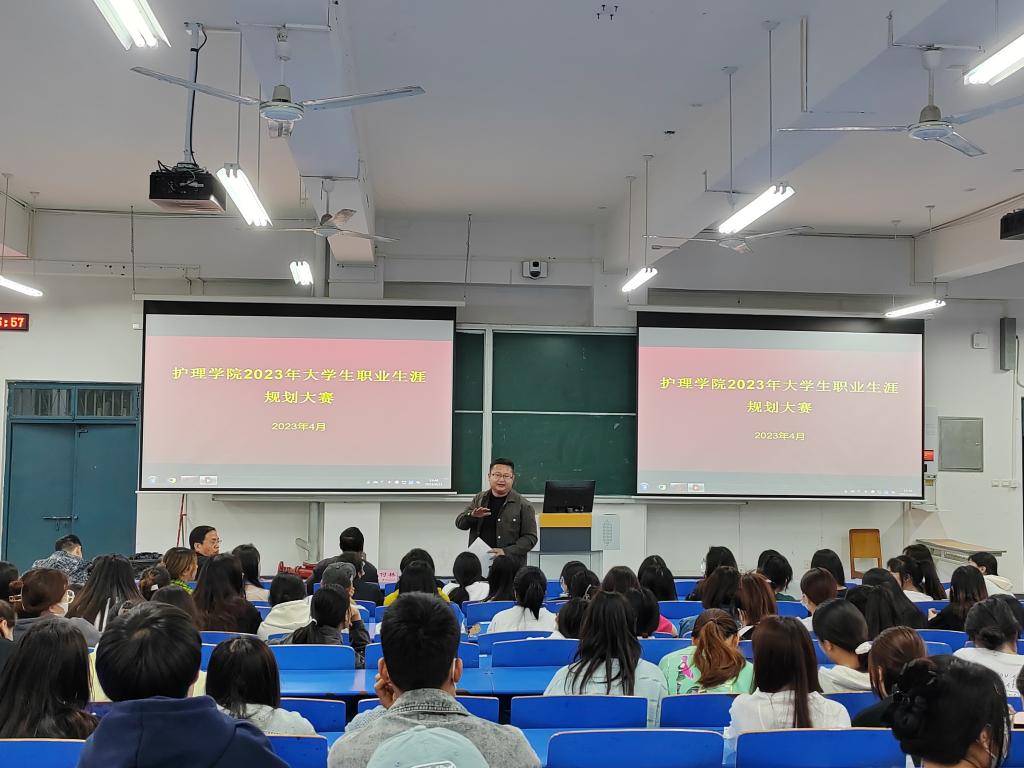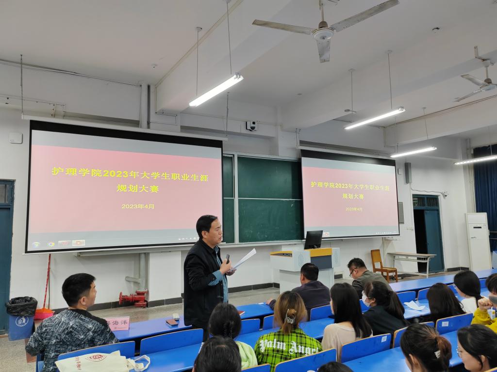 为进一步强化大学生职业规划意识和提高就业能力,鼓励引导广大学生将个人职业选择与国家发展战略、社会用人需求紧密结合,2023年4月11日,护理学院在二号教学楼102教室举办了2023年大学生职业生涯规划大赛。出席本次大赛的有6776永利集团创新创业学院院长张何林、创新创业学院指导老师陈沛、护理学院党总支书记杨明杰、就业专员梁海洋及各班学生代表。