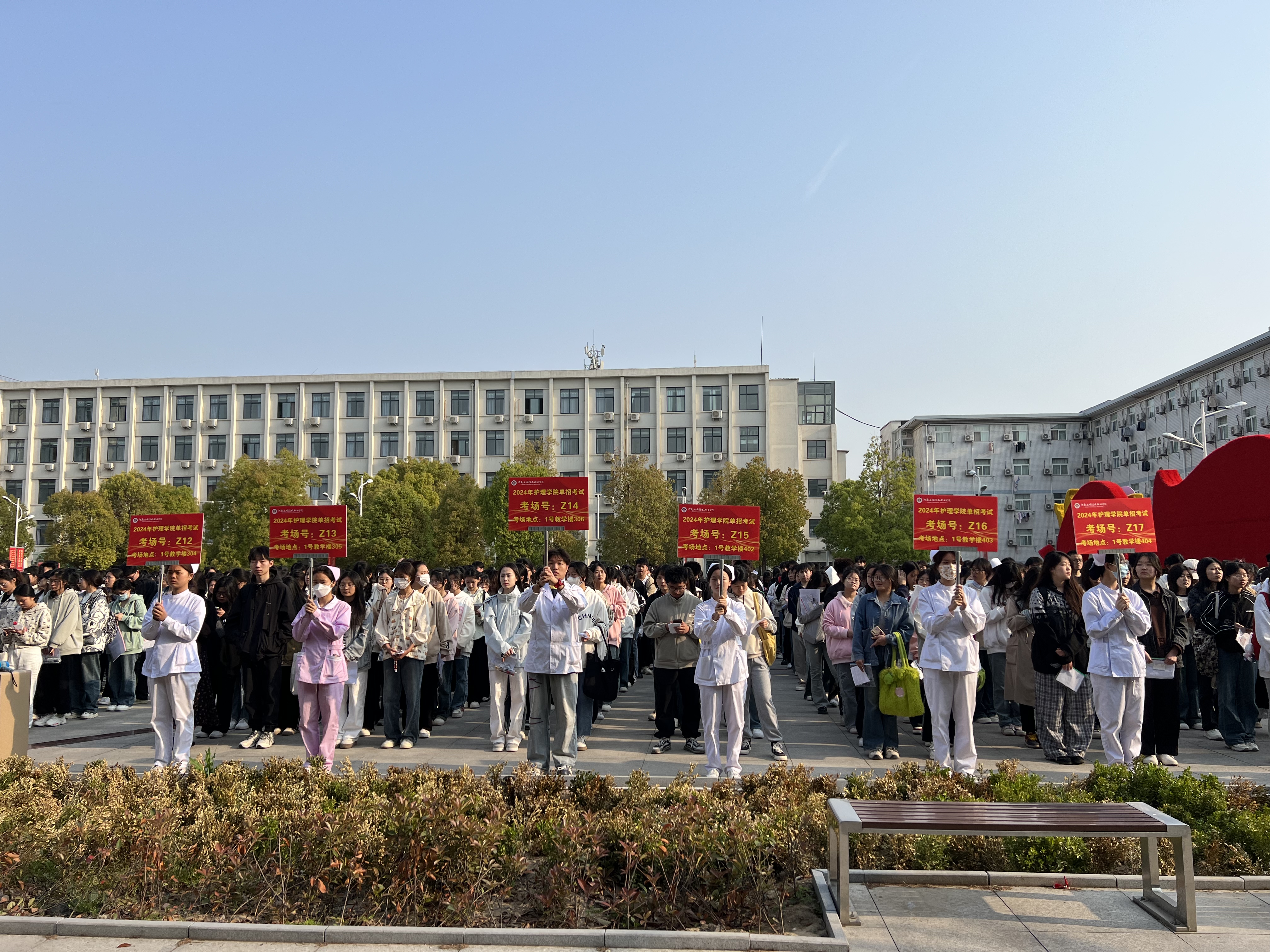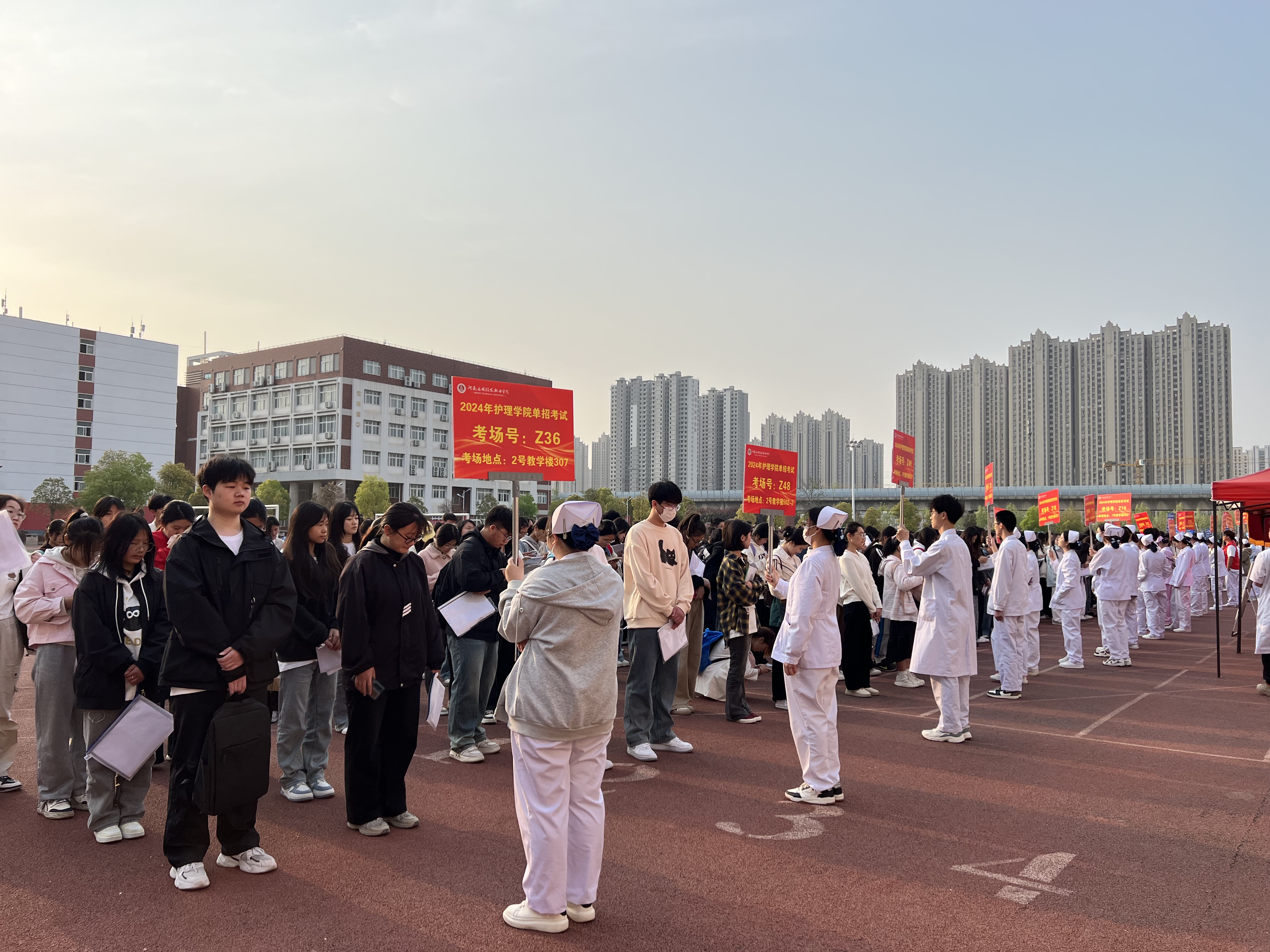 2024年4月7日至9日,护理学院2024年单招考试如期进行,来自河南省各地的2600多名考生来到我院,为自己理想拼搏奋斗。全院40余名考务工作人员,100余名志愿者参与其中,为考试保驾护航,圆满完成了单招考试的各项工作任务。