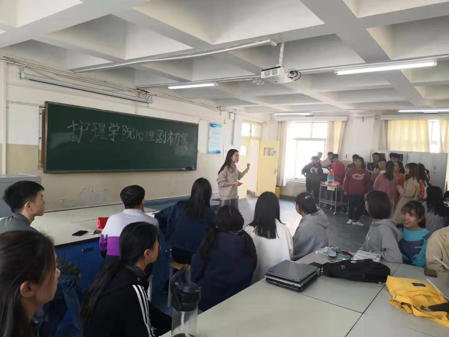 为积极响应学校“心理文化”月的号召,良好的传播积极向上的生活及学习理念,激发学生热情,活跃学院气氛,护理学院心理辅导站于2019年10月30日下午在D207教室举办了心理剧展演暨“心理文化月”心理情景剧活动,护理学院90名同学参加了演出。这次情景剧的主题是“健康青春你我,奉献伟大祖国”。护理学院徐娟书记高度重视,亲自指导并参与了情景剧筛选工作。