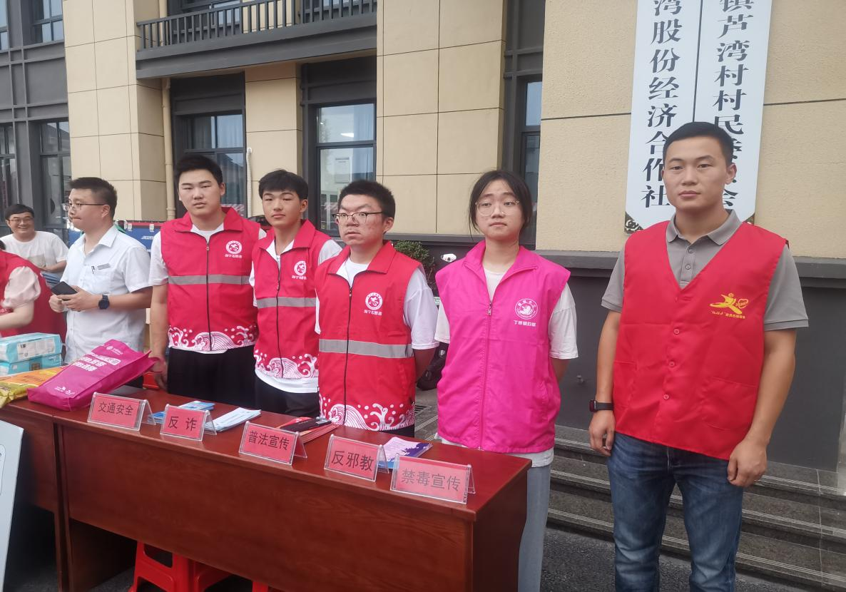 实践内容:浙江省嘉兴市海宁市芦湾村党群服务中心开展反诈骗及普法志愿服务。