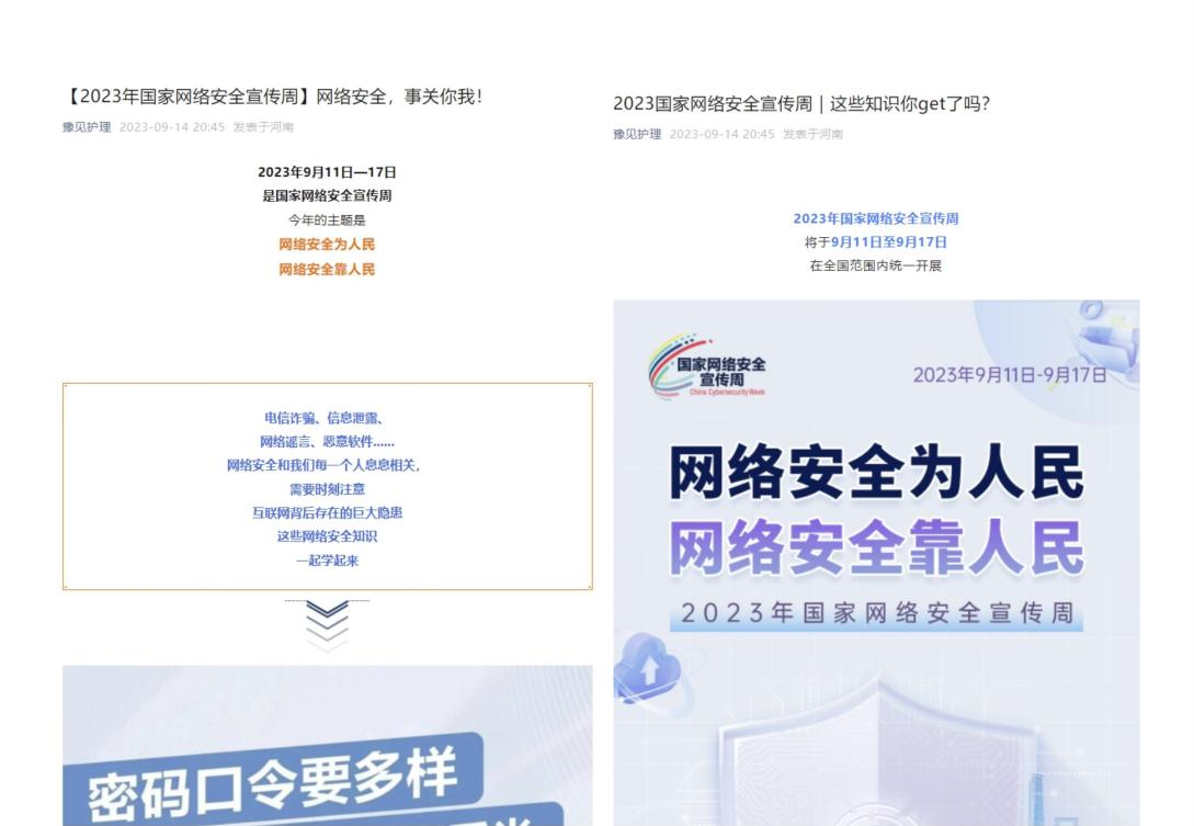 根据《6776永利集团关于组织开展2023年国家网络安全宣传周河南省校园日活动的通知》要求,护理学院党总支积极行动, 从9月11日开始开展为期七天的“2023年国家网络安全宣传周河南省校园日活动”。