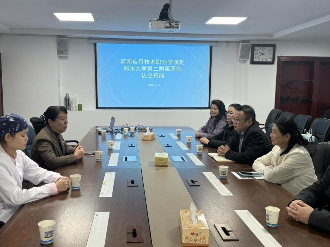 为进一步拓宽毕业生就业渠道,加强校企合作育人实效,1月27日,yl6776永利集团党总支书记张忠勇、院长王风云带领实习指导教师团队先后赴郑州大学第二附属医院、郑州大学第三附属医院开展访企拓岗专项行动,并走访慰问实习学生,深入了解学生实习情况,推动产教融合向纵深发展。